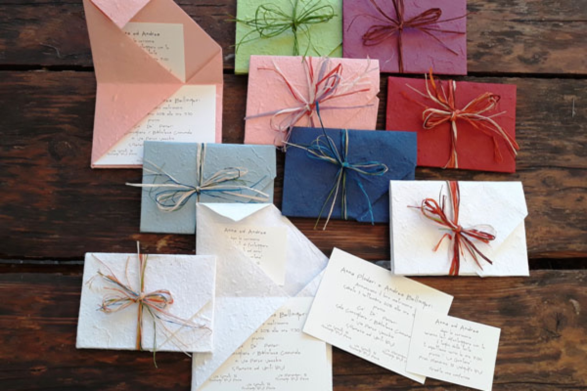 Radici nel Fiume realizza partecipazioni ed inviti personalizzati per matrimoni e/o cerimonie stampati a colori su cartoncino ecologico* avorio o bianco utilizzando le stesse carte per le produzioni di album, quaderni e portafoto.